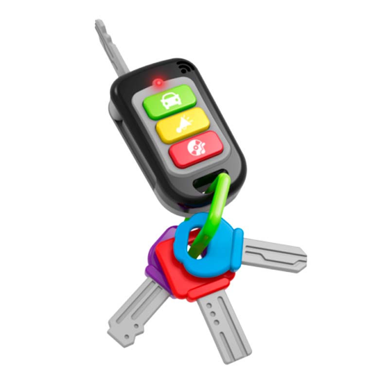 Seje bilnøgler der ligner dem, de voksne har! ´Mine første bilnøgler´ er med 3 nøgler og en funktionel fjernbetjening. Nøglerne har realistiske billyde og lyseffekter. Perfekt til rolleleg for de mindste. Bruger 2 x AAA-batterier (demo-batterier medfølger) Fra 2 år Se alle varer fra Happy Baby