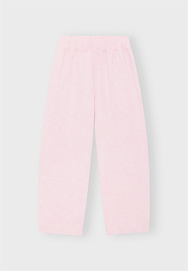 Behagelige, lyserøde sweatpants i en afslappet pasform med diskret mønstret vævning og brede, lige ben. Bukserne har en løs pasform og en elastisk talje.