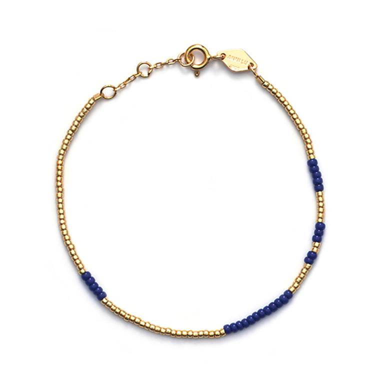 Det fine Asym armbånd er et smukt forgyldt armbånd fra Anni Lu med fine navy farvet perler, det er perfekt at matche op med med ens smykker derhjemme man kan eventuelt sætte flere af armbåndene sammen for et cool look. Her kan det både sættes sammen med andre af armbåndene i blå eller guld, eller en helt anden farve alt efter man ønsker.