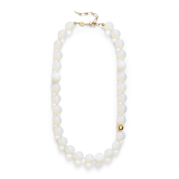 The Bubbles Halskæde fra ANNI LU har et let og elegant udtryk med små, glimtende perler, der leger med lyset. Den kombinerer opalitskinnende perler med klare glasperler, hvilket giver en subtil farvespil-effekt, der ændrer sig i solens skær. Halskæden er guldbelagt og afsluttes med en lille, ferskvandsrisperle, hvilket tilføjer et sofistikeret og feminint touch. Den justerbare kæde gør, at halskæden kan sidde perfekt rundt om halsen og fremhæve ethvert outfit.