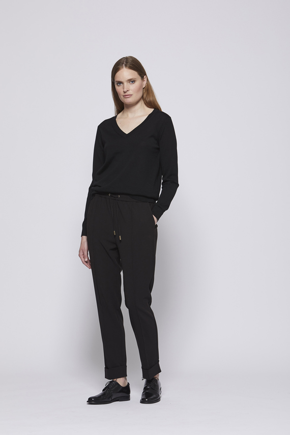 Bukser i løs pasform med elastik i taljen og skrå sidelommer
