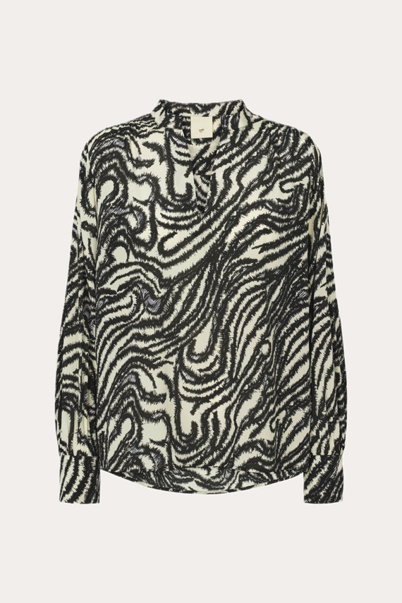 Melvin blusen er en elegant silkebluse med en krave, der har forlængede kanter, hvilket giver et unikt twist til den klassiske stil.