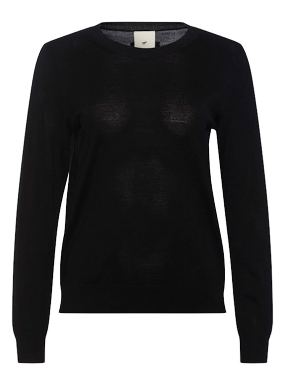 Kario fra Heartmade er lækker basis strik bluse i en klassisk sort kvalitet samt udformet i superfin og blød merino uld som ikke kradser.