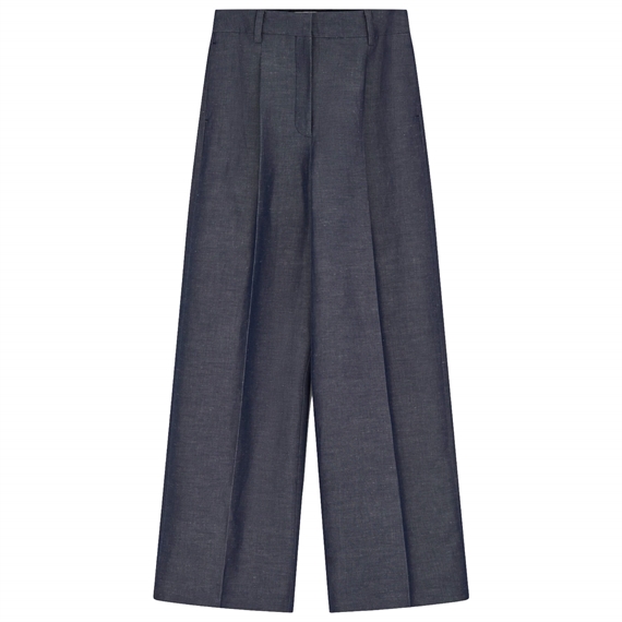 Thom trousers er vidde, skræddersyede bukser med læg foran, der giver en elegant silhuet og et sofistikeret udtryk. Designet med bæltestropper og praktiske sidelommer, som kombinerer funktionalitet med et rent, tidløst look. En alsidig model, der kan styles både formelt og afslappet.