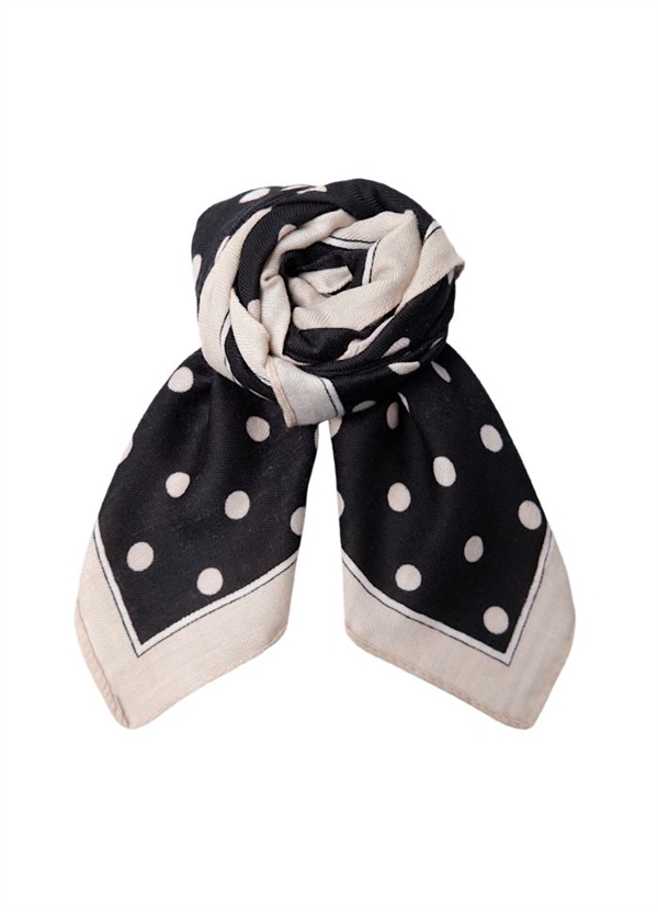 Skønt tørklæde, med prikker og konstrast farvet kant.