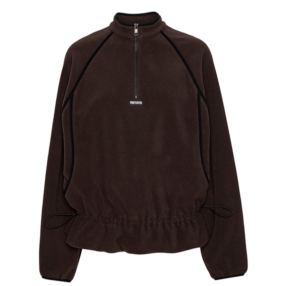 Rotate Fleece Half Zip i farven Molé er en mørkebrun fleece med et sporty og funktionelt design. Den har høj krave med lynlås til brystet, sorte kontrastdetaljer langs skulder og ærmer samt et lille Rotate-logo på brystet. Modellen er skabt med justerbar snøre i taljen, så du kan tilpasse pasformen, og elastikkanter ved håndleddene for ekstra komfort. Den bløde fleece gør den perfekt til hverdagsbrug, afslapning eller som et let yderlag i overgangssæsonerne.