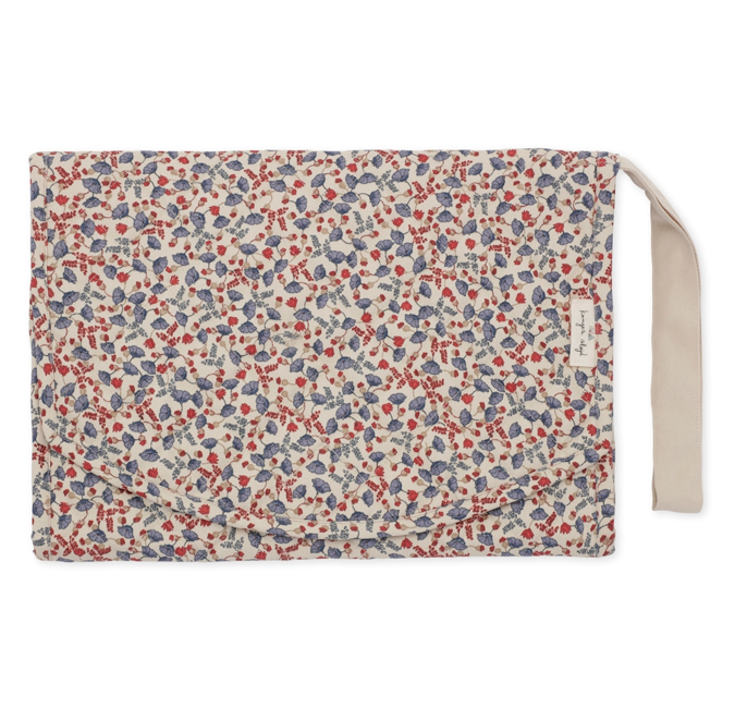 Smukt pusleunderlag fra Konges Sløjd i quiltet design og det smukke Marche de Fleur print. Pusleunderlaget er nem at lukke og åbne med en hånd, da der er en praktisk magnet lukning. Indvendig er der smarte fold-ud lommer, hvor der er plads til skiftetøj, bleer og pusletilbehør. Den er nem at folde sammen, så den fylder mindst muligt og kan derfor lægges i håndtasken, i en rygsæk eller under barnevognen. Konges Sløjd er et populært dansk brand med et stort udvalg af interiør med farver, der matcher på kryds og tværs. Deres produkter er lavet i naturmaterialer, som er med til at give den bedste komfort for børnene. Måler 25 x 35 cm. Foldet ud: 70 x 69 cm Lavet i 100% økologisk bomuld