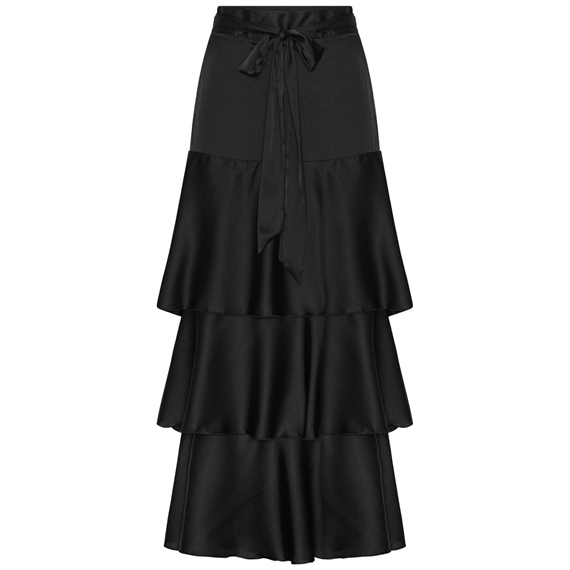 Celine-nederdelen fra Karmamia er en tidløs og feminin style, der kombinerer elegance med lethed. Den lange, lagdelte silhuet falder smukt og skaber et sofistikeret udtryk, mens det bløde satinlignende materiale giver et eksklusivt skær. Nederdelen bindes i taljen med et smalt bånd, som fremhæver figuren og tilføjer et delikat touch. Style den med en enkel skjorte eller strik for et klassisk hverdagslook, eller med en silkebluse og hæle til særlige anledninger. En alsidig favorit, der elegant fører dig fra dag til aften.