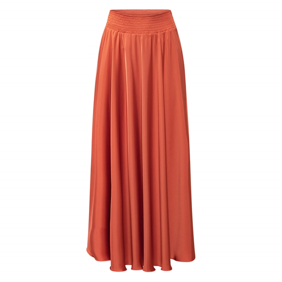 Savannah Skirt fra Karmamia er en utrolig smuk maxi nederdel med elastik i taljen og flotte læg. Savannah nederdelen fra Karmamia er en klassiker, og er denne gang i en smuk orange farve og fremstillet i en lidt tykkere og mere elegant blød silke-satin kvalitet, som er strygefri. En utrolig lækker Karmamia nederdel, der både kan bruges til hverdag med et par støvler og strik og til festlige anledninger.