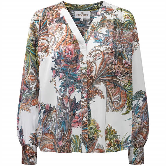 Amelia shirt fra Karmamia er en utrolig smuk skjorte bluse med flatterende V-hals med plisserede detaljer. Skjorten er udformet i den velkendte og lækre satin kvalitet samt designet med lange ærmer. En smuk skjorte du både kan bruge til hverdag og fest!