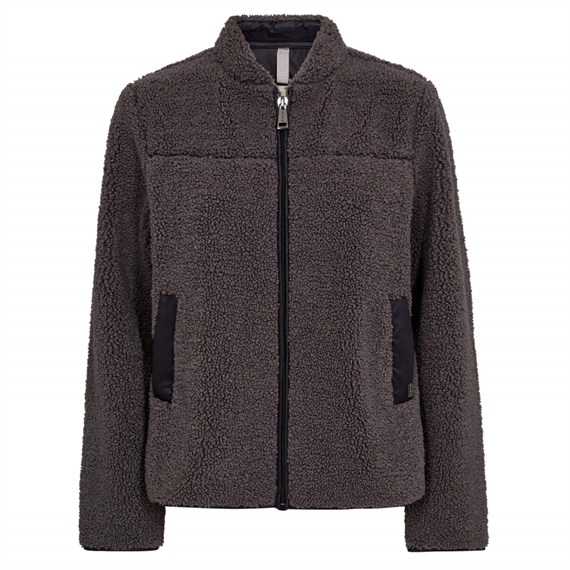 Blød og bamset jakke i en varm brun nuance. Jakken har lange ærmer og er fremstillet i en teddy-kvalitet med en fluffy overflade, der giver et hyggeligt og afslappet udtryk. Den har høj krave, lynlåslukning foran og praktiske sidelommer med kontrastdetaljer. En stilren og komfortabel overgangsjakke, der giver et cool og casual look.