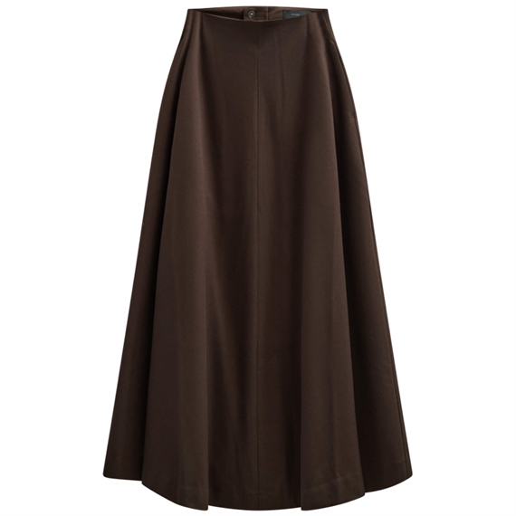Elegant og tidløs maxinederdel fra Copenhagen Muse, designet i en smuk mørkebrun nuance. Nederdelen har en flatterende A-formet silhuet, der falder let og skaber et sofistikeret udtryk. Den højtaljede pasform giver et feminint look, mens de fine pressefolder foran tilfører struktur og kant. Lukningen bagtil med skjult lynlås sikrer et enkelt og stilrent finish. Nederdelen er fremstillet i en eksklusiv kvalitet med en glat overflade, der gør den både komfortabel og elegant at have på. Style den med den matchende blazer for et moderne suit-inspireret look, eller kombiner den med en enkel strik for en afslappet, men chic hverdagsstil.