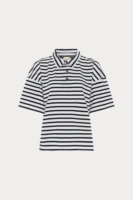 Erun T-shirt er en klassisk poloshirt med korte ærmer og en afslappet, boxy pasform. Designet med sænkede skuldre og slidser i siderne for et moderne touch.