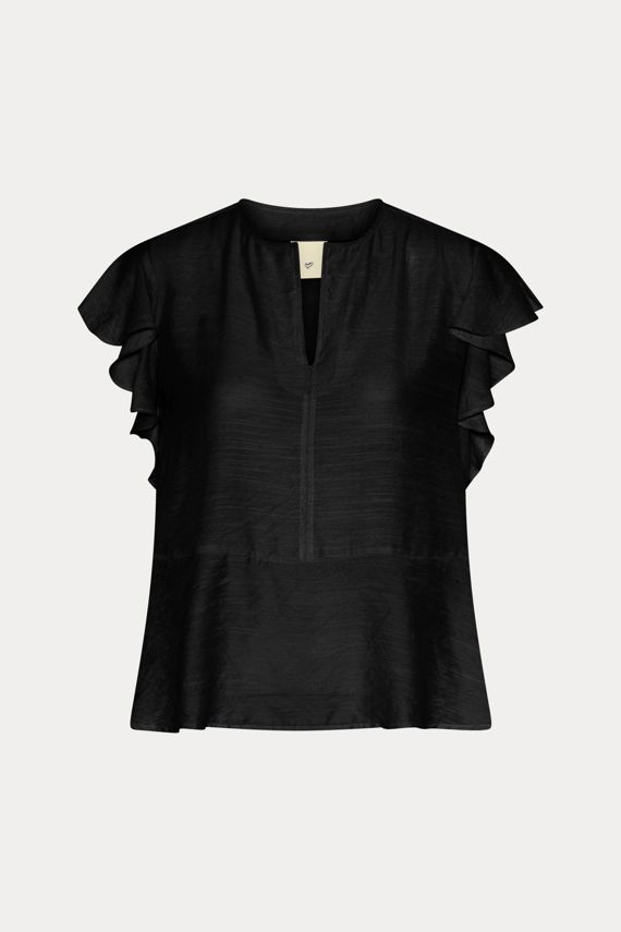 512HMTuea er en feminin top i letvægtigt stof med flagrende flæseærmer, en smigrende A-formet silhuet og elegant nøglehulsudskæring foran.