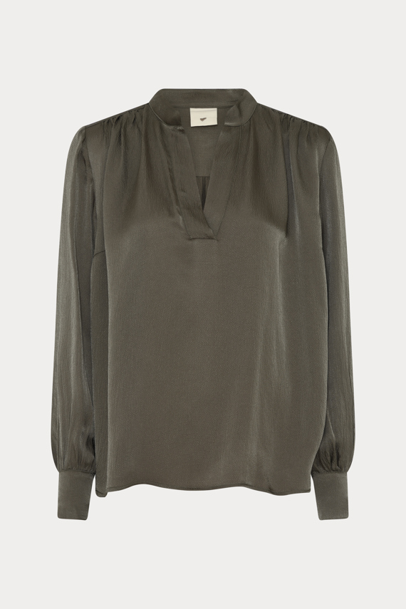 HMMersa skjorte er en let skjorte med V-udskæring, lange ærmer og rygpanel med dybe læg. En raffineret silhuet med bevægelse og ro.