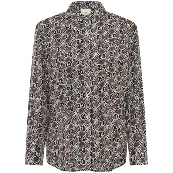Milard fra Heartmade er en skøn loose-fitted skjorte i det fineste print Black Snake. Skjorten har klassiske detaljer som krave, gennemgående knapluning og manchetter. Færdiggjort med fine læg bagpå! En lækker skjorte til efteråret fra Heartmade!
