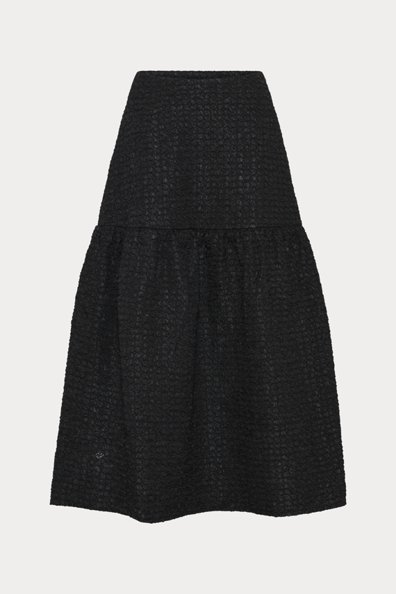 508HMSelia nederdel er en voluminøs nederdel i struktureret stof med høj talje og brede paneler, der giver et skulpturelt fald.