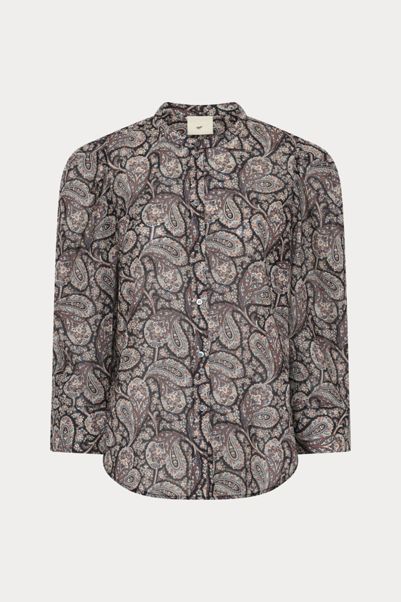 427HMTeras skjorte er en klassisk skjorte med et moderne paisleyprint. Designet har en afrundet krave, smalle manchetter og et let, feminint fald.