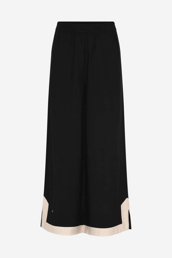 510HMNikas pants are wide-leg trousers with an elasticated waist, a defined contrast trim, and a calm, fluid drape that creates a balanced, graphic silhouette. Style them with the matching Tarik shirt for a modern, cohesive set, or pair them with a light shirt for a softer, more balanced look. They also work beautifully with a relaxed knit for an effortless layered expression. - Loose fit - Elastic waistband - Wide legs - Contrast trim