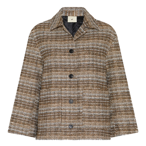 Julian Jakke er en kort, boxy jakke med en struktureret silhuet, der giver et moderne og selvsikkert udtryk. Den er fremstillet i en vævet kvalitet. Den klassiske krave og knaplukningen understreger det tidløse design, mens de diskrete sidelommer tilfører funktionalitet uden at forstyrre de rene linjer på jakken.