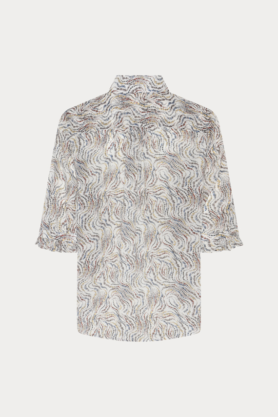 427HMTelser shirt is a lightweight shirt with a classic collar and button-through front, crafted in a soft quality featuring a flowing, wave-inspired print. Style it with solid-coloured trousers for a clean look, or pair with denim for a more relaxed silhouette. The short sleeves with subtle volume and the airy drape create a feminine and effortless feel. - Relaxed fit - Hip length - Classic collar - Button-through front - Short sleeves with subtle volume - Lightweight quality with all-over print