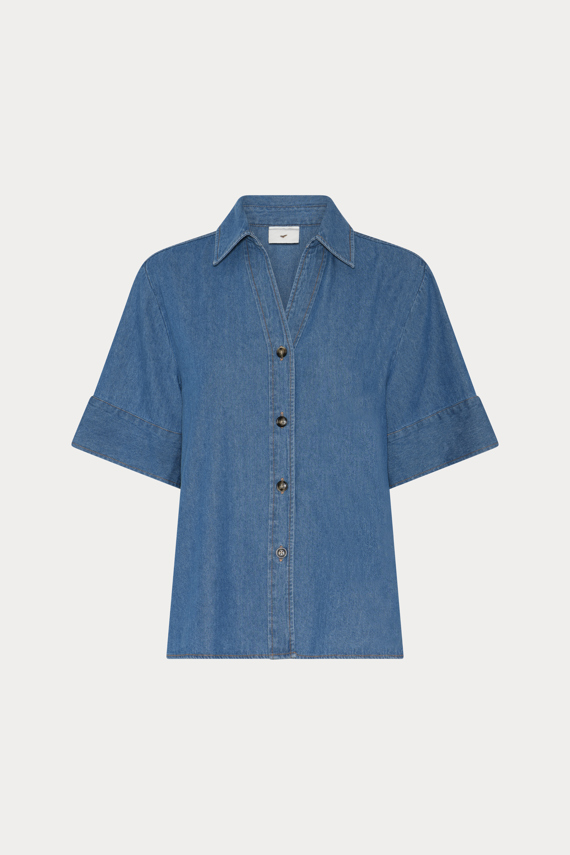 469HMMeki denim shirt is a short-sleeved shirt in soft denim with a relaxed silhouette, classic collar and button-through front. Style it with the matching shorts for a cohesive denim look, or pair with lightweight trousers for a more balanced contrast. The clean shape and visible topstitching add structure and a composed everyday feel. - Relaxed fit - Hip length - Classic collar - Button-through with short sleeves