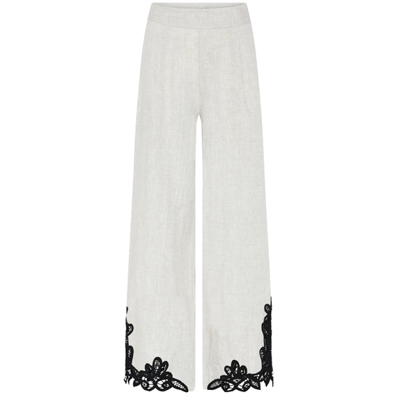 438HMNesea bukserne fra Heartmade er lange bukser med lige, vid silhuet, høj talje og kontrastblonde langs benafslutningen.