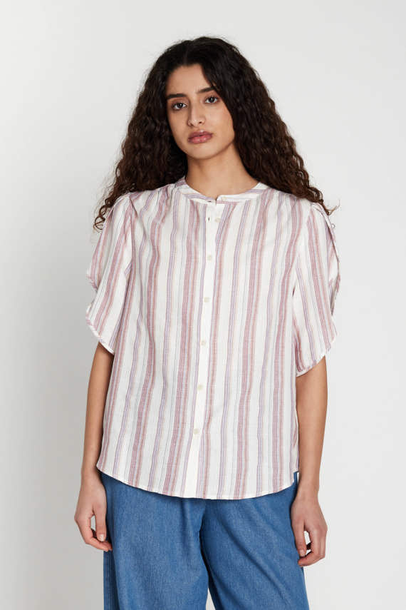 418HMTulin shirt is a feminine shirt with short, voluminous sleeves that add a soft and elegant touch to the silhouette. Style it with tailored trousers for a refined everyday look, or pair with denim for a more relaxed expression. The button-through front and clean round neckline create a classic contrast to the statement sleeves. - Regular fit - Hip length - Round neckline with small collar stand - Button-through front - Short sleeves with volume - Lightweight quality