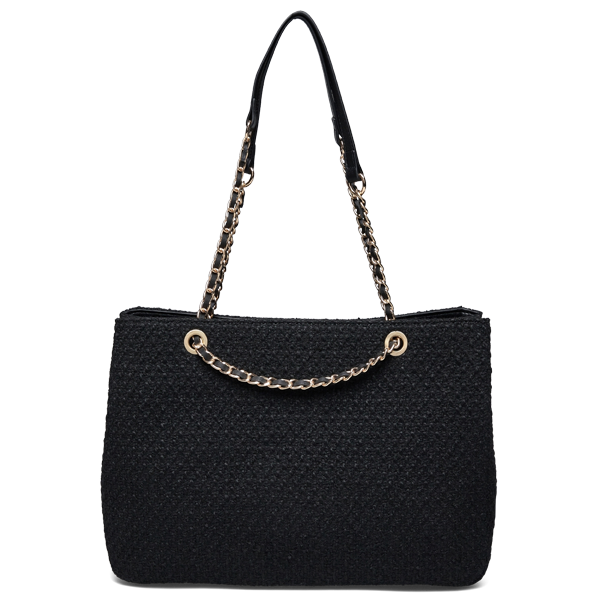 Rosemunde shopper i sort bouclé med elegant hverdagsdesign Denne Rosemunde shopper i sort bouclé er en rummelig og stilfuld taske, der kombinerer eksklusivt design med praktisk funktionalitet. Den vævede bouclé-tekstur giver tasken et sofistikeret udtryk, mens de elegante kædedetaljer tilfører et moderne og feminint look, som gør tasken velegnet til både hverdag og arbejde. Tasken er designet med god plads til dine daglige nødvendigheder som pung, mobil, kosmetik og andre personlige ejendele. Den holdbare konstruktion gør shopperen velegnet til daglig brug, mens det tidløse sorte design gør den nem at kombinere med enhver garderobe. Indvendigt er tasken praktisk opbygget, så du nemt kan holde overblik over indholdet. Materialekombinationen af polyester og uld giver tasken både struktur, slidstyrke og et eksklusivt udseende. Med sit elegante design og rummelige format er denne bouclé shopper fra Rosemunde et oplagt valg til dig, der ønsker en stilren taske med plads til det hele. Opgrader dit hverdagslook med en elegant shopper – bestil din Rosemunde bouclé shopper hos hugo-p.dk i dag. Se hele udvalget af tasker fra Rosemunde her. Specifikationer: • Produkttype : Shopper taske • Materiale : 90 % polyester, 10 % uld • Størrelse : 24 cm. x 36 cm. • Design : Vævet bouclé med kædedetaljer • EAN : 5715708212567 • Leverandørnummer : 101264-6050