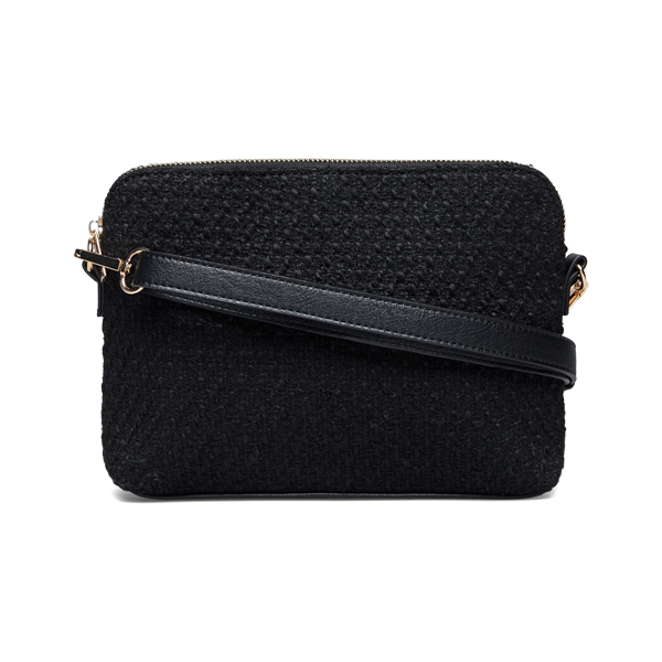 Rosemunde clutch i sort bouclé med elegant og alsidigt design Denne Rosemunde clutch i sort bouclé er en stilfuld og kompakt taske, designet til dig der ønsker et eksklusivt look med fokus på funktionalitet. Den vævede bouclé-tekstur giver clutchen et sofistikeret og moderne udtryk, som passer perfekt til både hverdagsbrug, festlige anledninger og middage ude. Clutchen er udstyret med en aftagelig rem, som gør det muligt at bære tasken både som skuldertaske og som klassisk håndholdt clutch. Den sikre lynlåslukning sørger for, at dine vigtigste ejendele som mobil, kort og nøgler opbevares trygt. Taskens kompakte størrelse gør den nem at have med, uden at gå på kompromis med stil. Tasken er fremstillet i en slidstærk materialeblanding af polyester og uld, hvilket giver både struktur og holdbarhed. Med sit elegante design er denne bouclé clutch fra Rosemunde et oplagt valg til dig, der ønsker en tidløs taske med et eksklusivt præg. Fuldfør dit outfit med en elegant clutch – bestil din Rosemunde bouclé clutch hos hugo-p.dk i dag. Se alle vores andre Rosemunde produkter HER. Specifikationer: • Produkttype : Clutch / skuldertaske • Materiale : 90 % polyester, 10 % uld • Lukning : Lynlås • Rem : Aftagelig • Overflade : Vævet bouclé-tekstur • EAN : 5715708212574 • Leverandørnummer : 101266-6050