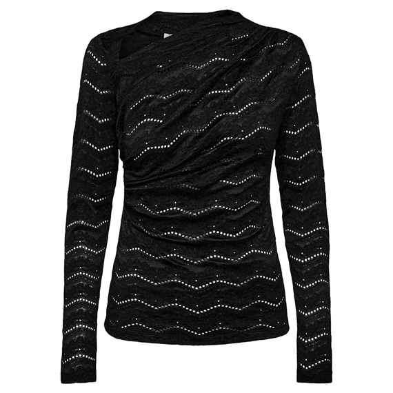 Den fine Lace Drape Neck Bluse i sort fra Haute L'amitie er den fineste bluse med smukke blonder. Blusen synes en smule gennemsigtig så man skal eventuelt have en top indenunder.