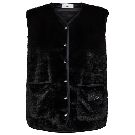Den fine New Fur Tech vest kommer med faux fur og I et cool design. Vesten lukkes med trykknapper hele vejen ned og med logo på fronten. Den perfekte vest til efteråret som luner. Brug den med en langærmet bluse eller strik indenunder.
