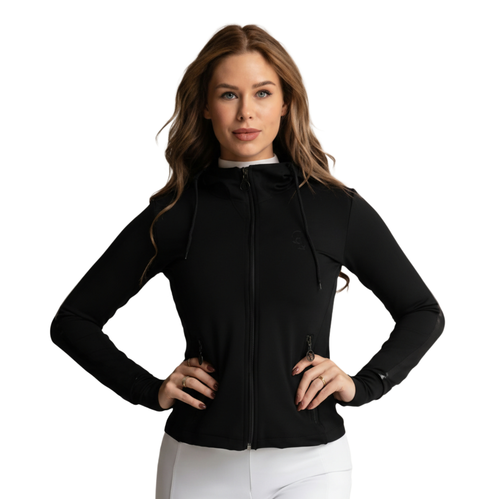 EP Eleá – Teknisk elegance med 360° stretch EP Eleá er den ultimative hybridjakke til rytteren, med shinny logo og andre detalier, der ikke går på kompromis. Skabt i et ultralet, recycled materiale, der føles som et naturligt ekstra lag hud. Jakken forener en flatterende feminin silhuet med rå teknisk performance. 360° Stretch: Fuld bevægelsesfrihed og kropsnær pasform. Vejrbestandig: Vandafvisende og hurtigtørrende – klar til det skiftende vejr. Åndbar komfort: Avanceret stof, der holder dig tør og veltilpas. Gennemtænkte detaljer: Vandafvisende kvalitetslynlås og dybe, praktiske lommer.