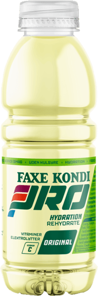 Faxe Kondi Pro Original Rehydrate: Klassisk Faxe Kondi Lemon/Lime smag med vitamin C og rehydrerende isotonisk opløsning, der bidrager til at nerve- og immunsystemet fungere normalt under og efter fysisk aktivitet.