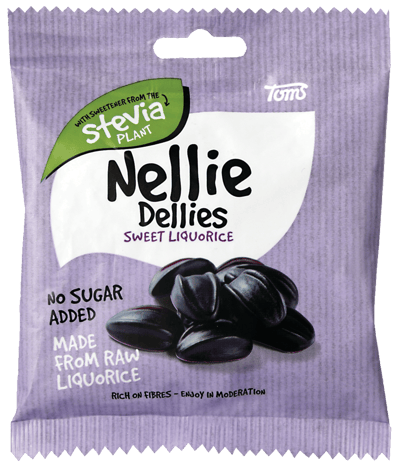 Er du på jagt efter god smag, men et lavt indhold af kalorier? Så er Nellie Dellies det oplagte valg. Du får således den karakteristiske gode smag af sød lakrids, dog uden alle kalorierne. Slikket er nemlig ikke tilsat sukker, men derimod det 100 % naturlige sødeprodukt, steviol glycosid, fra den sydamerikanske plante, Stevia. Selvom Nellies Dellies er fri for sukker, går du altså ikke på kompromis med smagen.