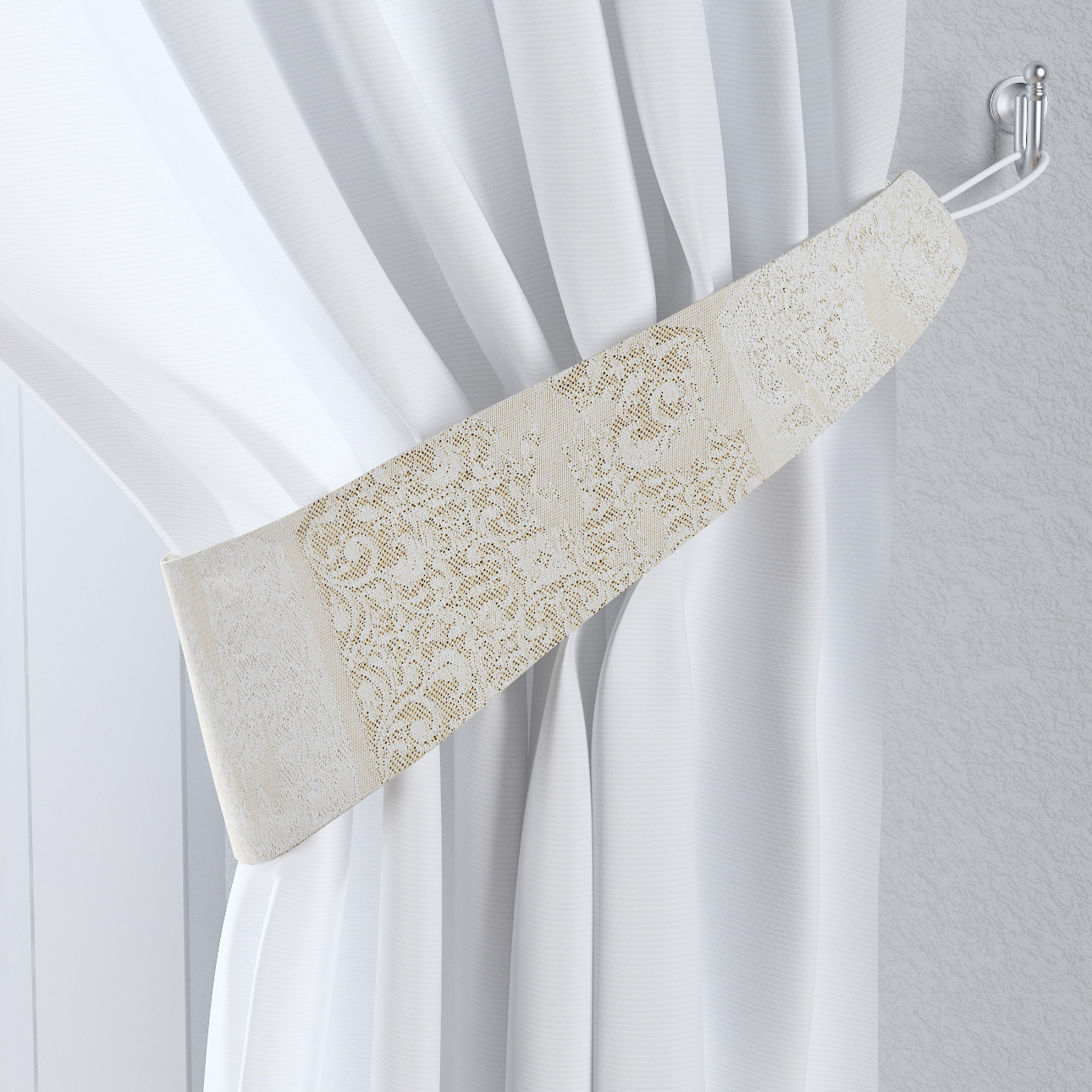 Gardinbånd er et elegant tilbehør der laver en smuk drappering og samtidig holder gardinet til siderne. Gardinbånd Victoria er indvendig vatteret. Vi kan ikke garantere at flere gardinbånd af stormønstret stof vil være helt ens.