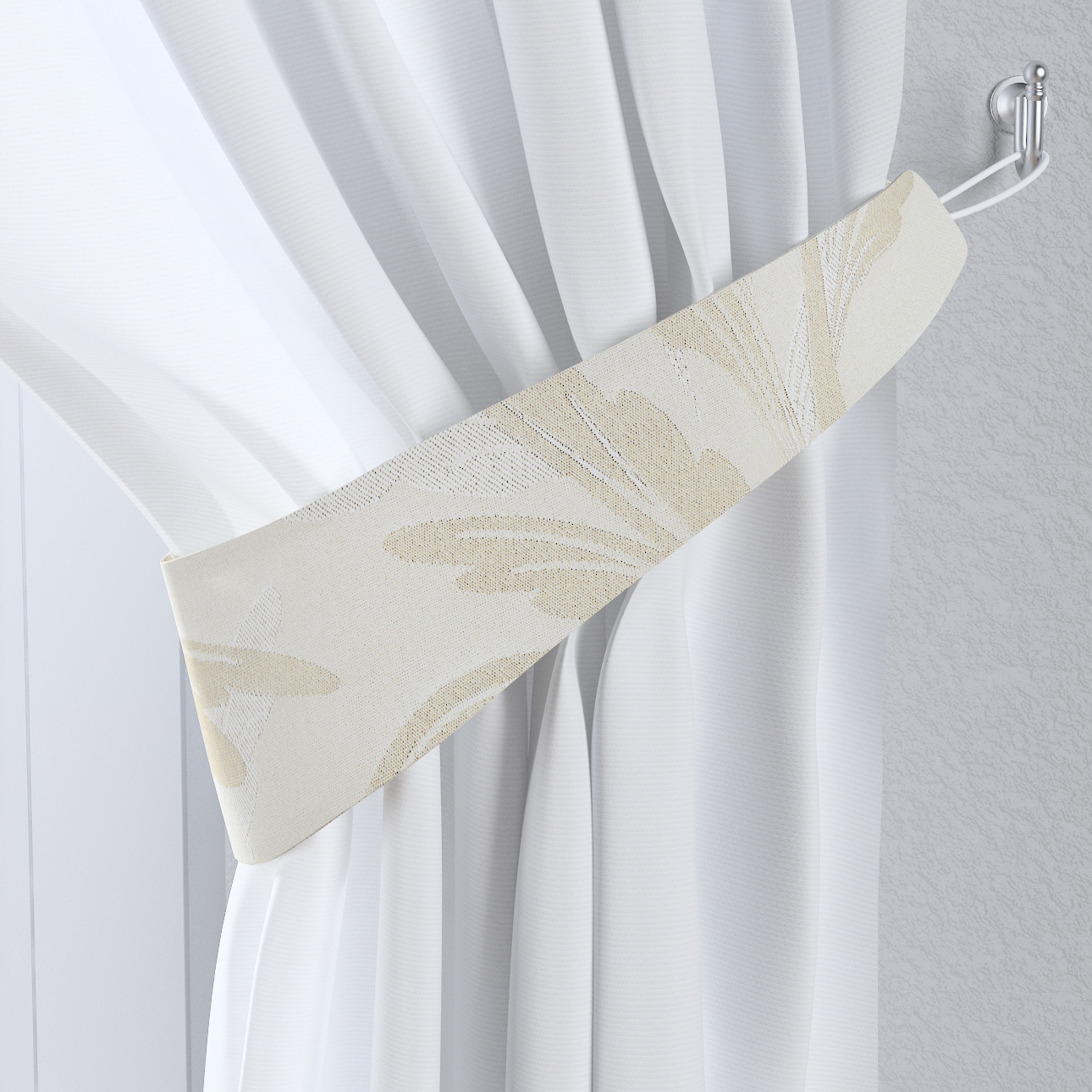 Gardinbånd er et elegant tilbehør der laver en smuk drappering og samtidig holder gardinet til siderne. Gardinbånd Victoria er indvendig vatteret. Vi kan ikke garantere at flere gardinbånd af stormønstret stof vil være helt ens.