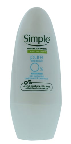 Simple 50ml Roll On Pure motverkar effektivt dålig lukt och ger en långvarig känsla av komfort och renhet. Applicera på ren och torr hud under armarna. Lämplig för daglig användning.