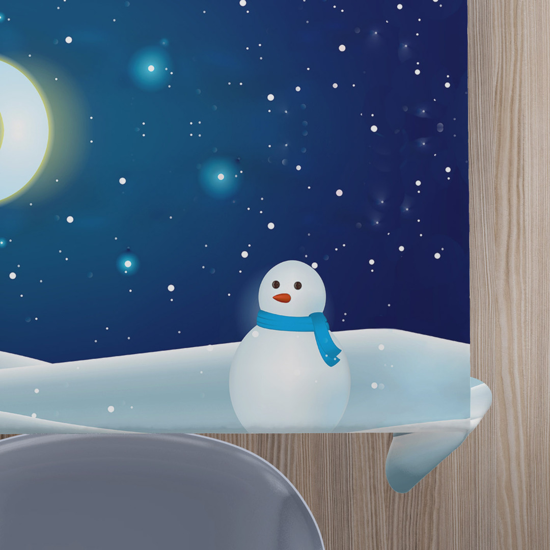 Voksdug med snemandDenne voksdug er ret simpel. Snemanden som du ser i billedet, gentager sig selv per cirka 140 cm. Det betyder at man på et gennemsnitligt spisebord kun vil se snemanden en til to gange. Over snemanden, eller på midten af bordet, ser man en nattehimmel med måneskin.