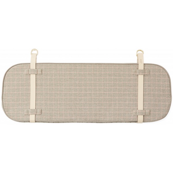Smart vendbart hovedgærde til børnesengen fra Oyoy. Den flotte sengegavl, monteres i de to læder stropper, der har messing spænder. En smart måde at forny en almindelig seng, så man kan sidde godt, når der f.eks læses bøger i sengen. Til rengøring anbefales det at tørre med en våd klud-spot kun ren. Mål: L94 x H32 x B4 cmMaterial: 100% bomuld