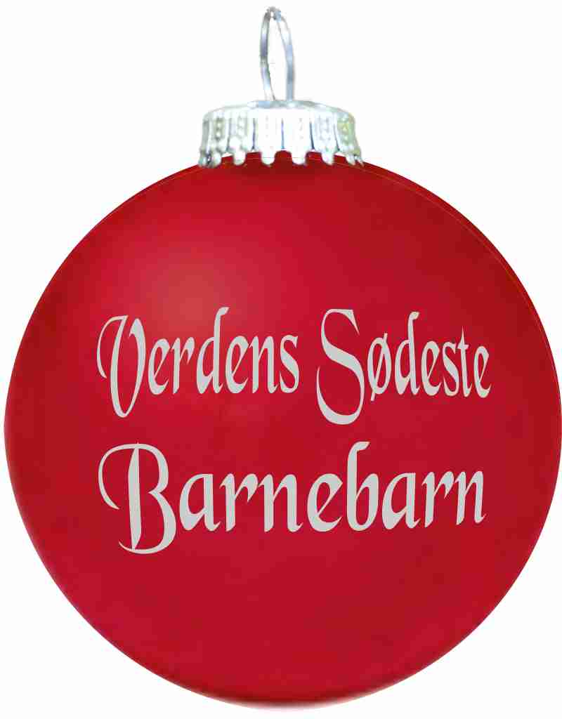 Julekugle i mat glas med teksten "Verdens Sødeste Barnebarn"