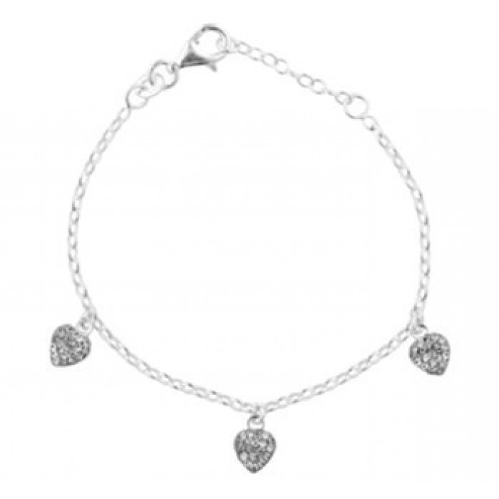 Sølvarmbånd med 3 hjerter med klar zirkonia