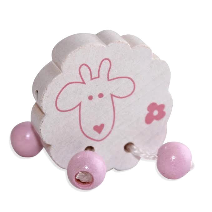 Træperler - Dingleben Får - Vandret Babylyserød