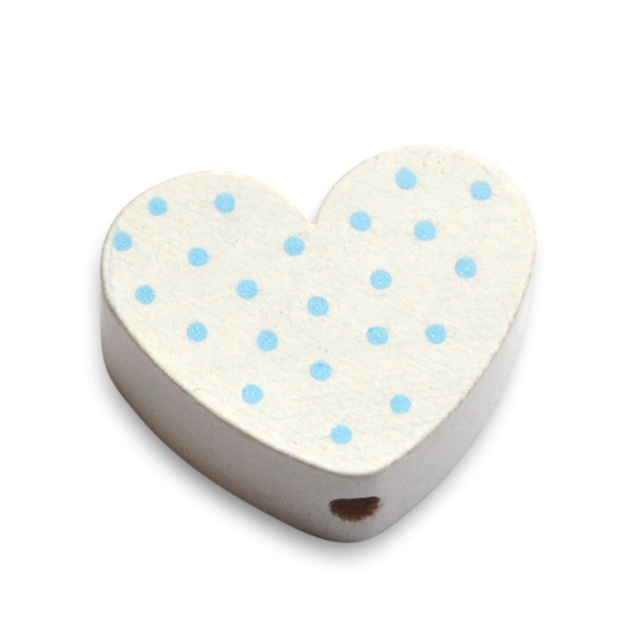 Træperler - Hjerter med prikker - Lodret Hvid/lyseblå