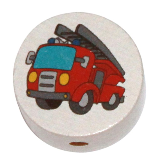 Træperler med motiver på begge sider af fly, brandbiler og biler