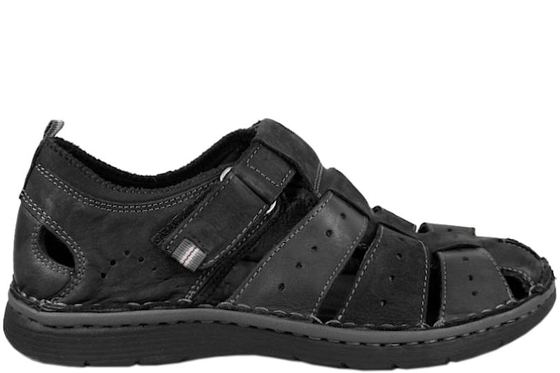ROHDE. Sandal til herre med lukket snude. Sandalen har et stort skindstykke, som går hele vejen fra snuden og op, og bliver lukket med en velcrorem. Henover vristen er der tre skindremme. Sandalen er med fast hælkappe. Mellem- og slidsål er lavet i gråt og sort EVA skum. Super fin sandal til mænd. .. Læs mere på https://www.juul-sko.dk/herresko/herre-sandaler/rohde-9910-str45.htm