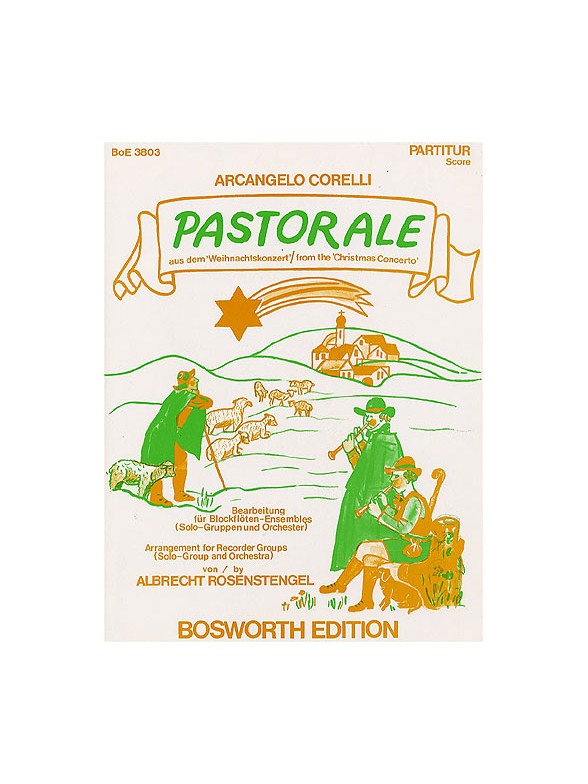 Pastorale aus dem 'Weihnachts-konzert' bearbeitet fuer Blockfloeten-Ensemble (Solistentrio und Orchester) von A. Rosenstengel.The Pastorale from Corelli's 'Christmas Concerto', arranged for recorder groups (Solo Trio and 'orchestra') by Albrecht Rosenstengal.