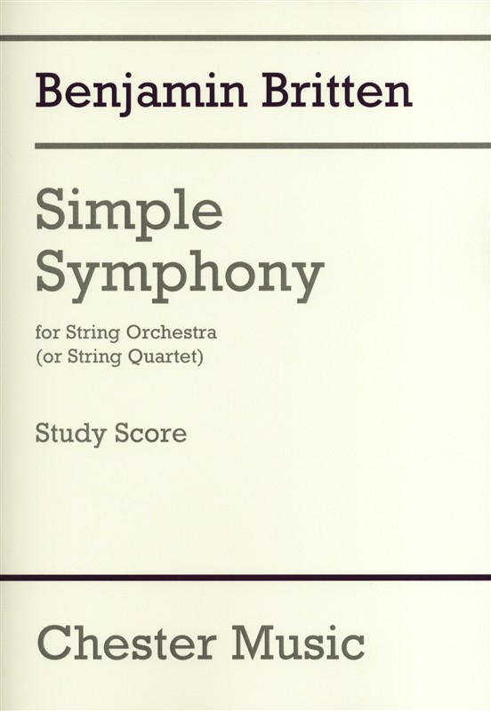 This Simple Symphony is entirely based on material from works which the composer wrote between the ages of nine and twelve. (The actual sources are given in footnotes to each movement.) Although the development of these themes is in many places quite new, there are large stretches of the work which are taken bodily from the early pieces - save for the re-scoring for strings. It is suitable for string quartets or string orchestras, being scored for Violin I, Violin II, Viola, Cello and Double Bass.