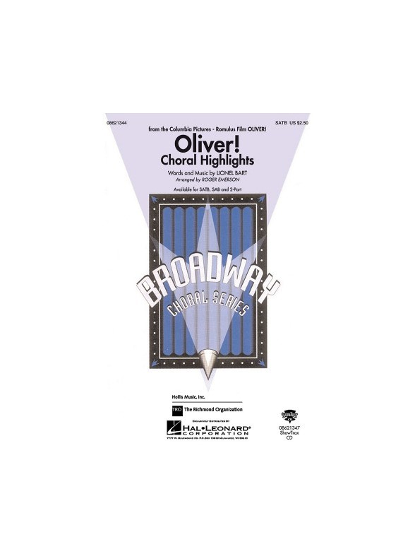 A perfect way to introduce the music from one of Broadway's classic musicals. Originally staged in 1960, Lionel Bart's musical tale of Dickens' Oliver Twist still charms today's audiences. Includes: Consider Yourself, Food, Glorious Food, I'd Do Anything, and Where is Love? Available for SATB, SAB, 2-Part and ShowTrax CD. Performance Time: Approx. 8:00.