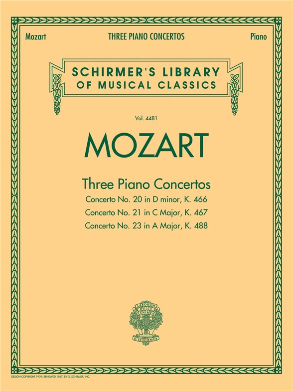 Three of Mozart's most famous Piano concertos available in one value-priced volume. Includes No. 20 in D minor, No. 21 in C Major, and No. 23 in A Major.